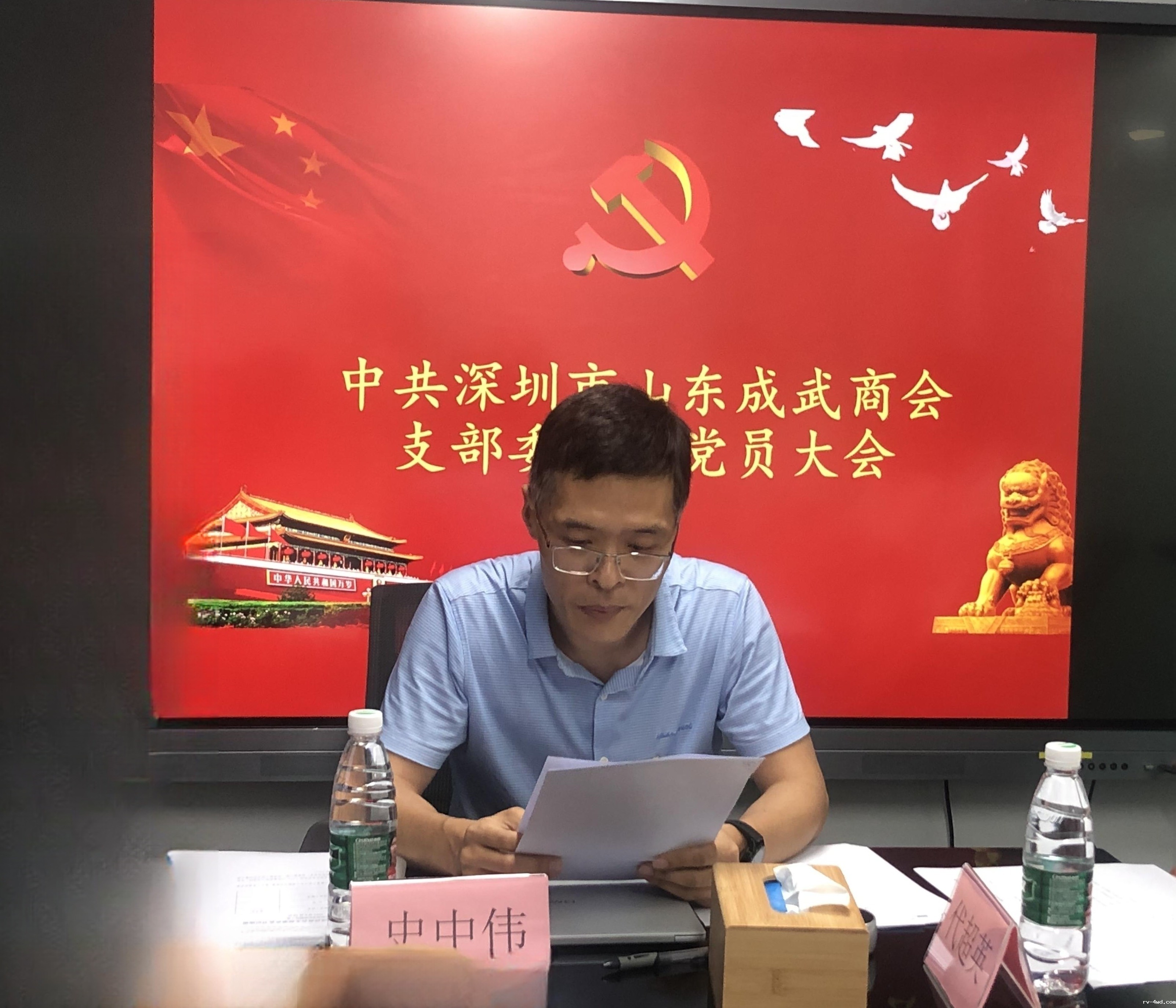 18新利党委党办主任张含增同志宣读《18新利党委关于成立中共深圳市山东成武商会支部委员会的批复》。