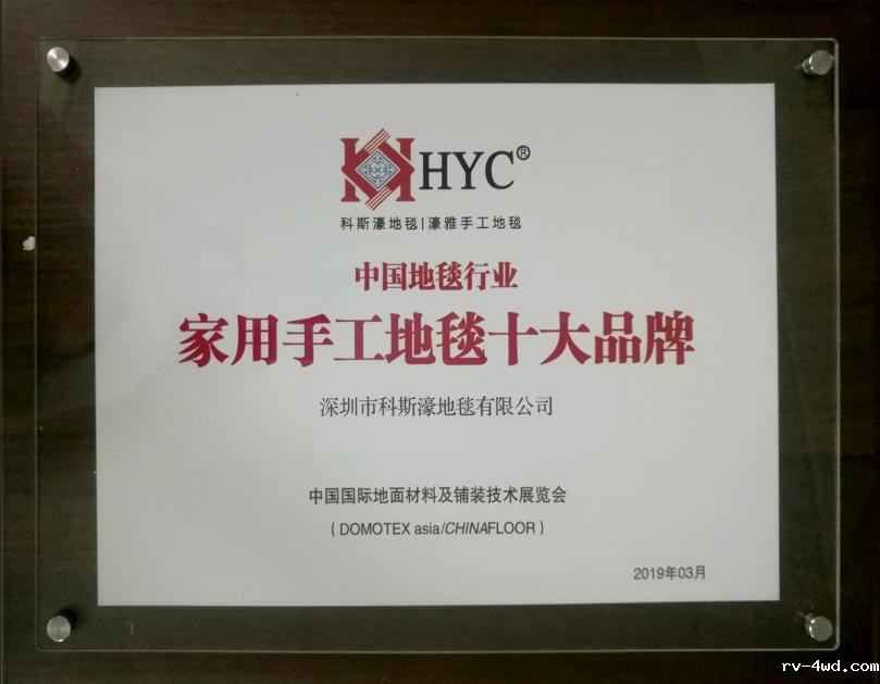 热烈祝贺我会理事单位HYC|科斯濠地毯|濠雅手工地毯在中国上海第二十一届中国国际地面材料及铺装技术展览会上荣获“中国家用手工地毯十大品牌”称号!