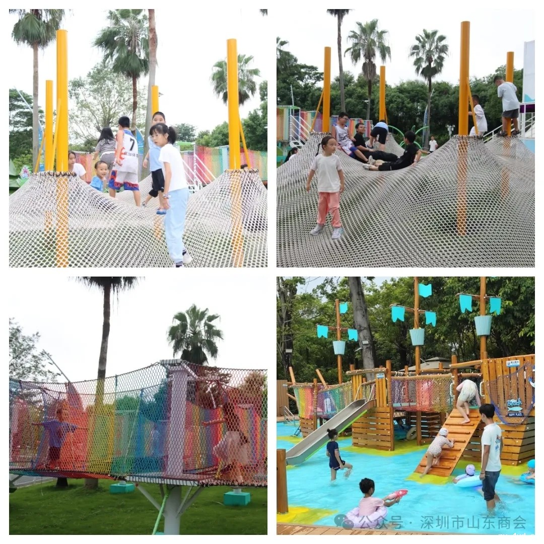 活动当天,天气虽然有些阴沉,但丝毫阻挡不了会员们参与活动的热情和一个个“小山东”们迫不及待玩耍的心情。现场气氛热烈,大人们三五聚在一起聊家常、谈项目、打够级、玩掼蛋;孩子们则时而攀上滑滑梯,时而爬上迷宫网、时而跳上蹦蹦床、时而骑上旋转木马、时而换上泳衣钻进水里打水仗·····,在游戏孩子们相互配合、相互协作,加强了认识与熟悉,增进互动与友谊,处处洋溢着爽朗的笑声与开心的笑脸。