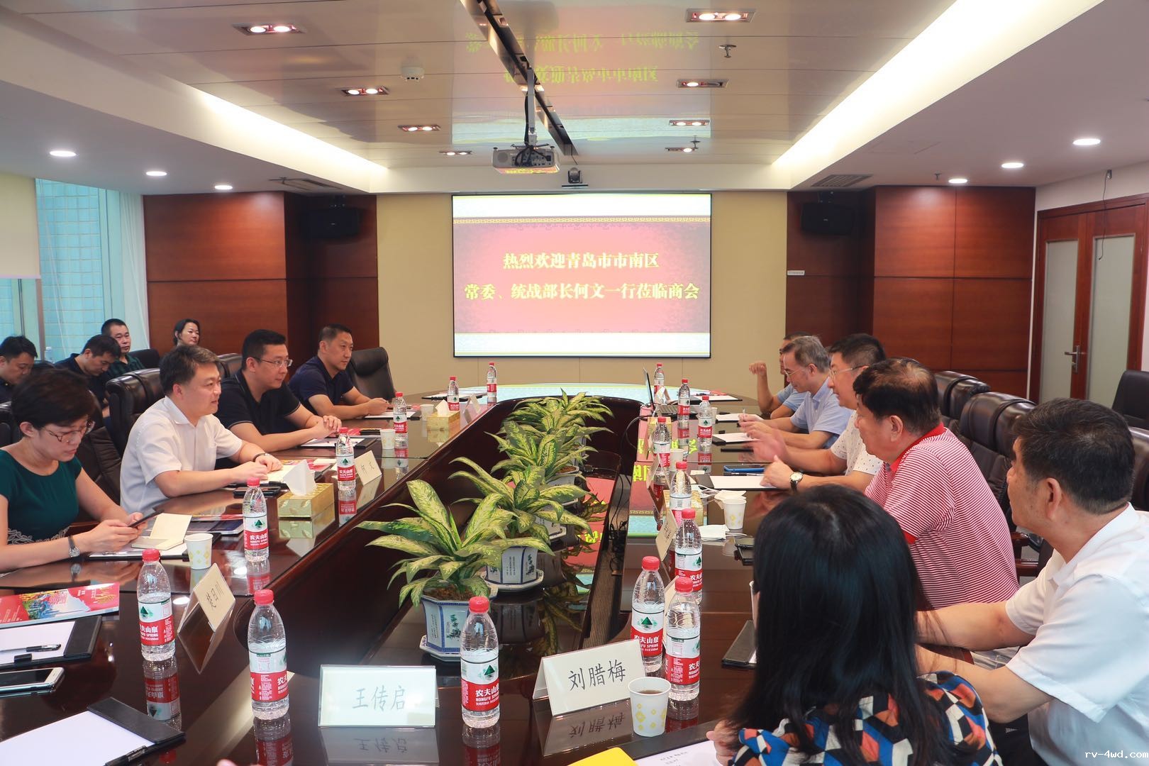 2020年9月10日下午,青岛市南区委常委、统战部长何文,区政府办公室主任王建一行到访我会,我会常务副会长张焕祥、毕永涛、孙永亮、梁庆伟、王义善、王传启在东华集团会议室与何文部长一行座谈交流。南山区中小企业协会会长胡宇舟,深圳市南山区粤海商会专职副会长兼秘书长刘腊梅出席会议。会议主要围绕商会在青岛投资商会大厦事宜进行讨论,会上观看了青岛市南区宣传片,并详细了解了青岛市南区三个地块项目的相关情况。