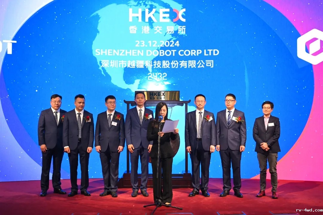 在上市仪式上,香港交易所上市委员会委员蔡瑞怡、上市科首次公开招股审查联席主管刘颖等重量级嘉宾,与越疆科技创始人兼CEO刘培超及核心团队一起,共同见证了越疆机器人发展历程中的这一里程碑事件。