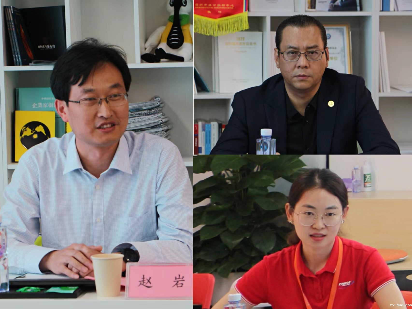 日照东港区商务局长赵岩(左)、我会执行秘书长陈振永(右上)、