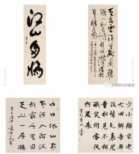 此次展览共展出50幅书作,诸体皆有、尺幅多样、内容丰富,求形立质,意趣盎然。既有气势恢宏的六尺八联榜书《望岳》、狂放婉约柔美洒脱的章草书长卷《千字文》、沉着痛快的行草书毛泽东诗词,又有端庄秀丽的小楷《孙子兵法》、《道德经》等长卷,还有古朴平和的隶书《惠州一绝》等等,笔墨浑厚,形神兼备,尽显鲁韵粤风。