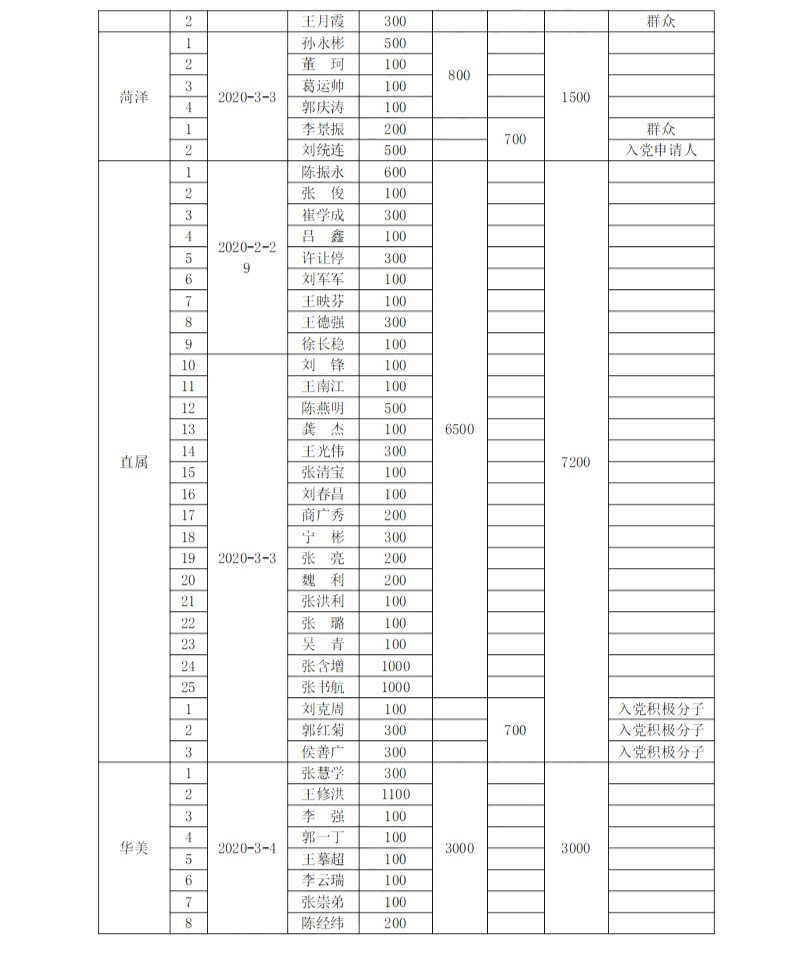 进入2020年,一场突如其来的新型冠状病毒引发的肺炎疫情在中国传统佳节之际席卷而来。数万生命等待挽救,数千家庭需要安慰,数万医护奔赴一线,十亿人民戮力同心。2月25日,中共中央组织部印发通知,要求各级党组织就党员自愿捐款加强指导服务,支持新冠肺炎疫情防控工作。捐款主要用于慰问战斗在疫情防控斗争第一线的医务人员、基层干部群众、公安民警和社区工作者等,资助因患新冠肺炎而遇到生活困难的群众和因患新冠肺炎去世的群众家属,慰问在疫情防控斗争中牺牲的干部群众家属等。