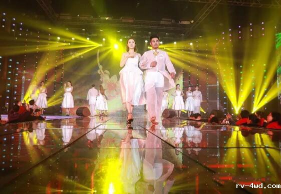 盛典上,一场10分钟的万足金婚纱秀令人惊艳赞叹,赛菲尔珠宝历年共计18套万足金婚纱齐亮相。伴随着悦动的音符,18位男女模特身披华彩熠熠的绝美婚纱及男士唐装结婚礼服,在如梦似幻的灯光中缓缓入场,将全场气氛点燃。