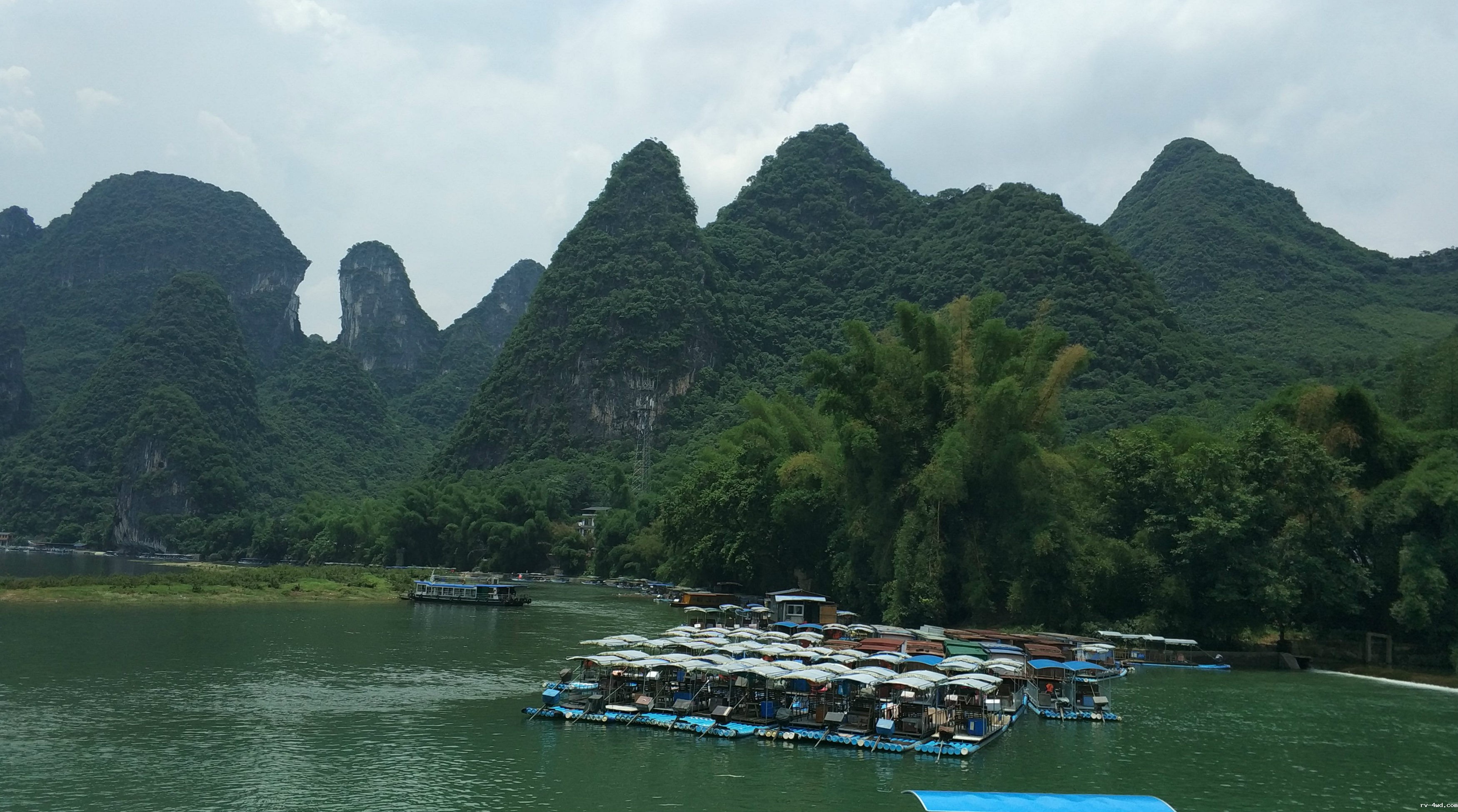 “桂林山水甲天下、阳朔山水甲桂林”。在兴坪古镇午餐后,大家便迫不及待的前往漓江领略名动天下的“桂林山水”。踏上漓江畔,大家纷纷拿出20元人民币与著名的“二十元人民币”合影留念。“漓江的水真静啊,静得让你感觉不到它在流动;漓江的水真清啊,清得可以看见江底的沙石;漓江的水真绿啊,绿得仿佛那是一块无瑕的翡翠。”不错的,阳朔的山水无论怎么看都是美的。我们乘船畅游漓江,两岸青山相对出,仿佛人在画中游。在这里除了九马画壁,我们还看到了非常有名的鱼鹰——鸬鹚。大家在船头拍照,在水光山色间留下难忘的纪念。