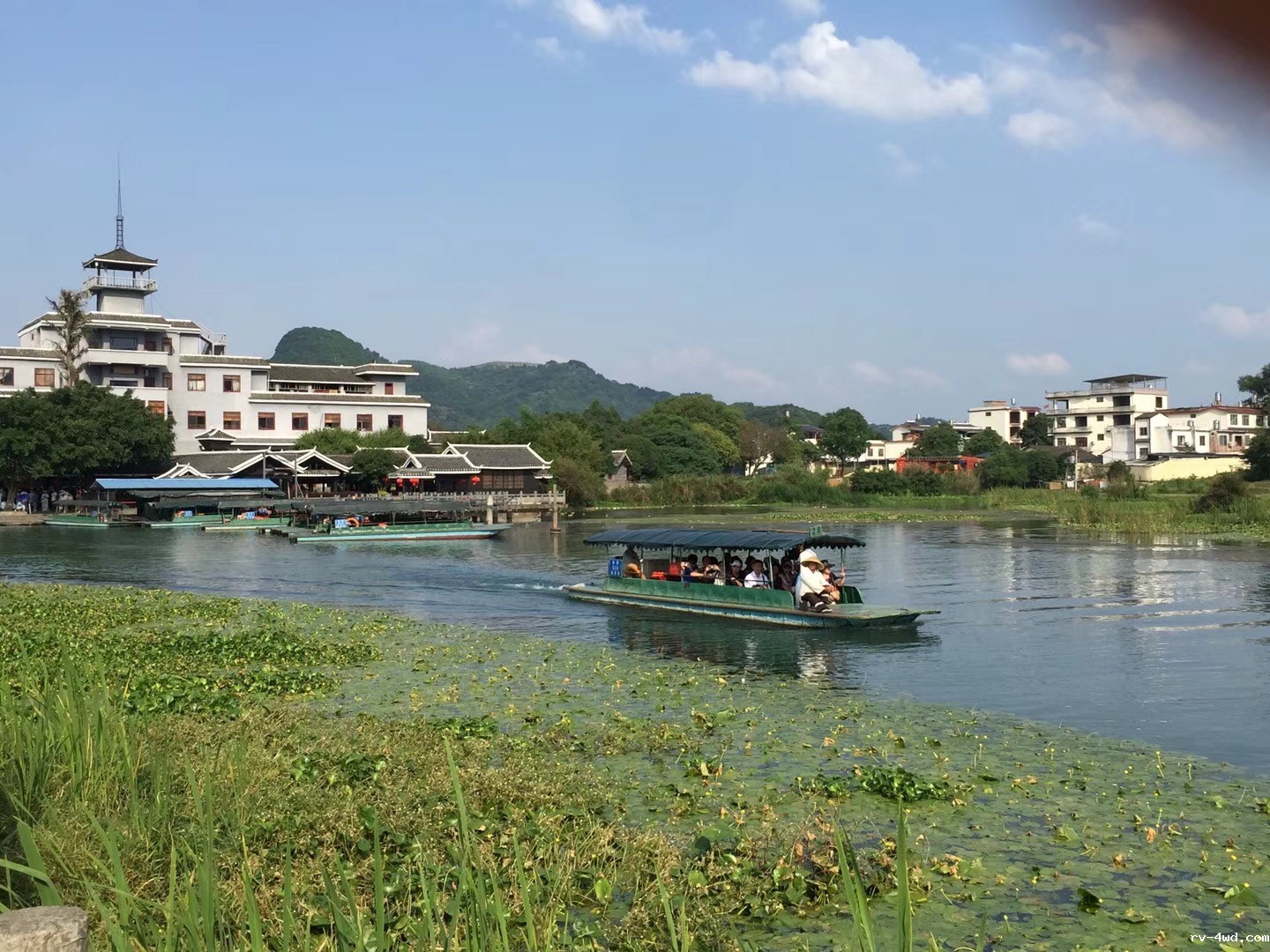 傍晚时分,我们来到世外桃源景区。世外桃源是根据晋代陶渊明所著的《桃花源记》中描绘的意境,结合当地的田园山水风光而开发建设的。景区内田园风光、民俗风情、民寨大观有机排序,与大自然的秀美山水融合为一体,不仅可以观赏山光水色,更能体验当地的民俗风情。我们乘轻舟环绕湖光山色,经田园村舍,过绿树丛林,又穿山而出,沿途可经原始形态的迎宾、祭祀、狩猎,又可欣赏到民族特色的狂歌劲舞、边寨风情。一路上,我们热情的与过往船只打招呼,传递我们的欢喜。