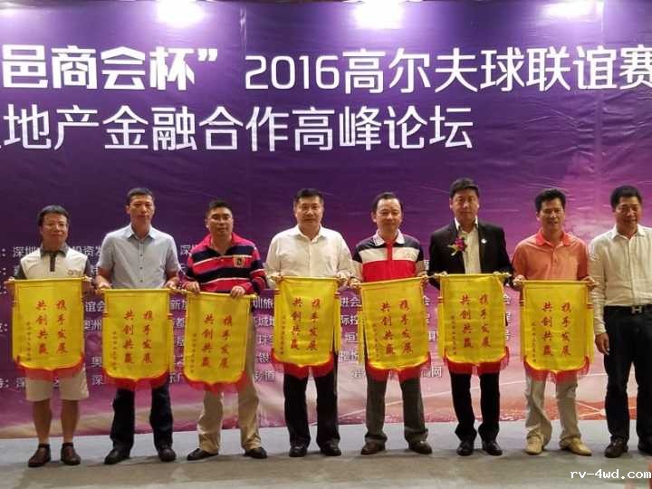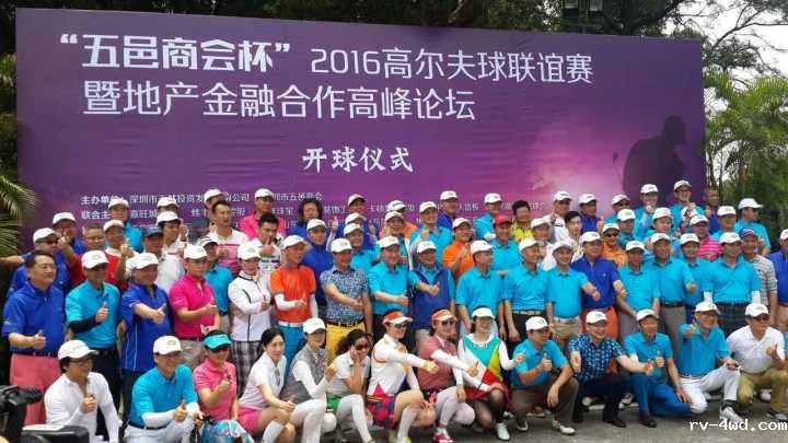 2016年4月21日,深圳市五邑商会在深圳市观澜湖高尔夫球场隆重举办 “五邑商会杯” 2016高尔夫球联谊赛暨地产金融合作共赢领袖论坛,本次论坛以“布局十三五,拓展产融联,谋求大共赢”为主题,从中国宏观经济的高度和产业结构的深度,深入探讨在新形势下房地产行业与金融界如何开展多层次全方位的合作,深入交流企业之间如何整合和共享资源、实现优势互补和共赢。