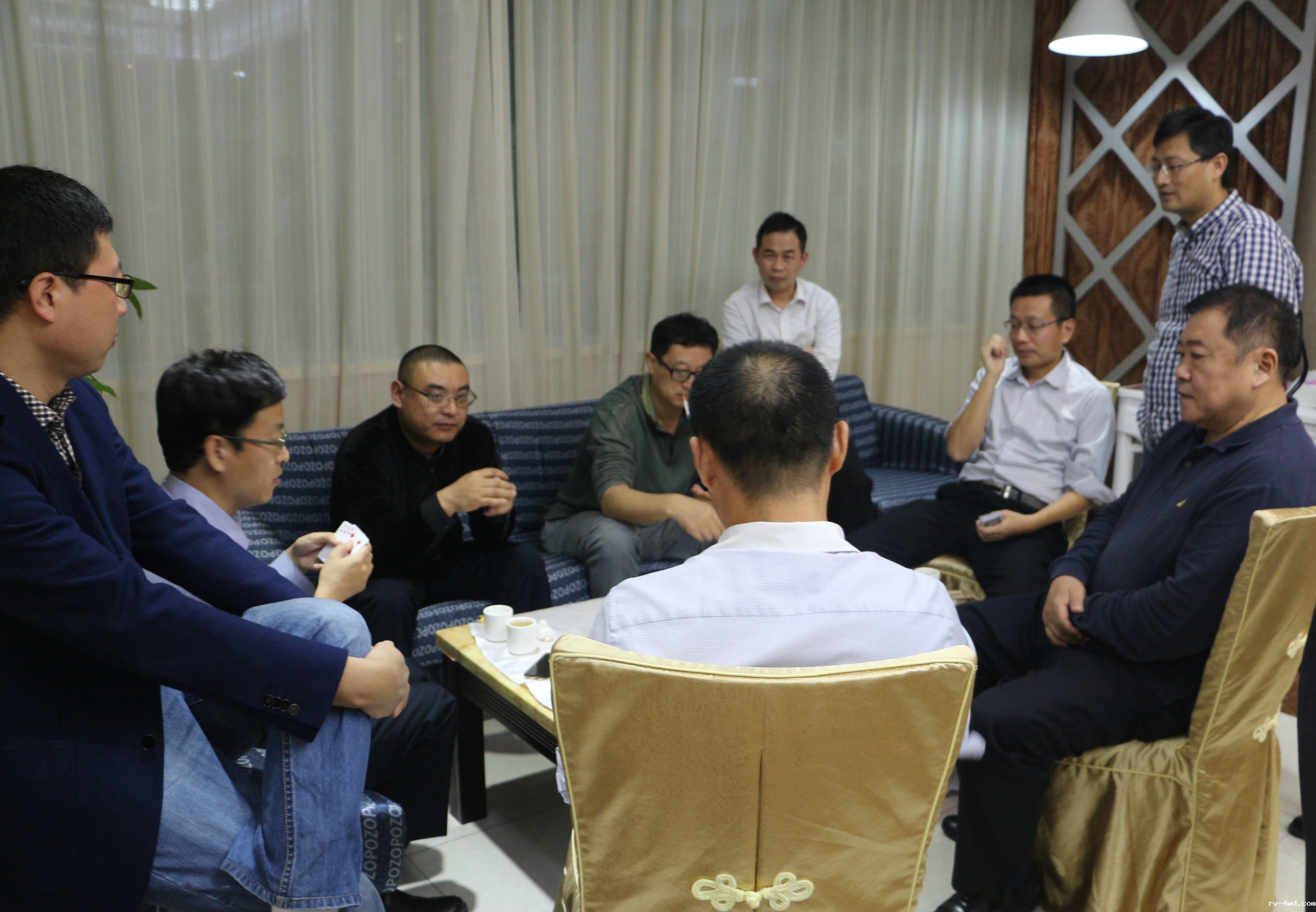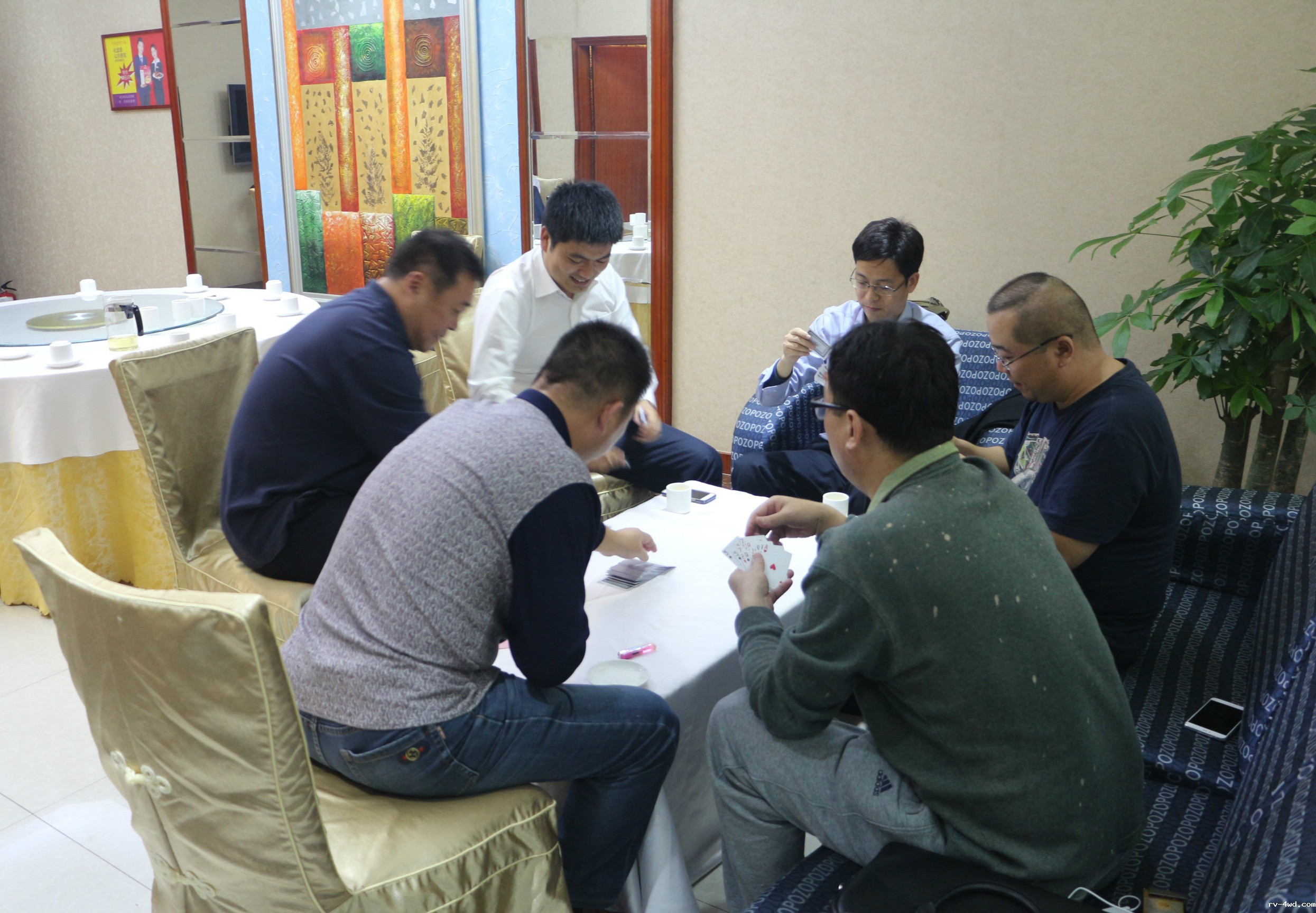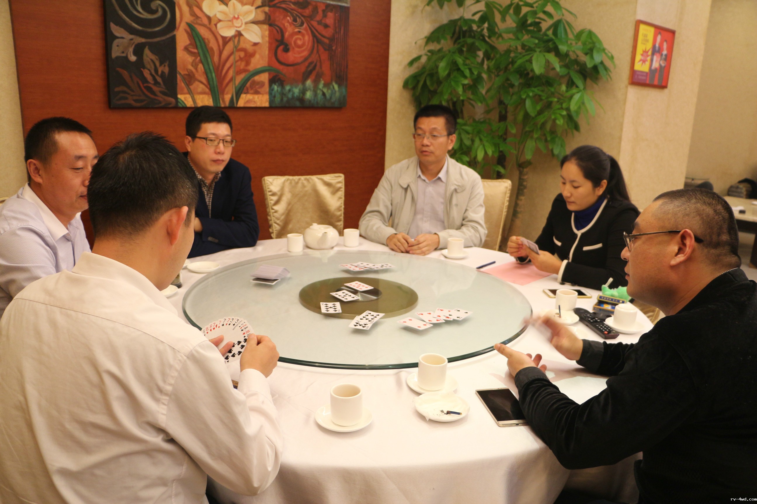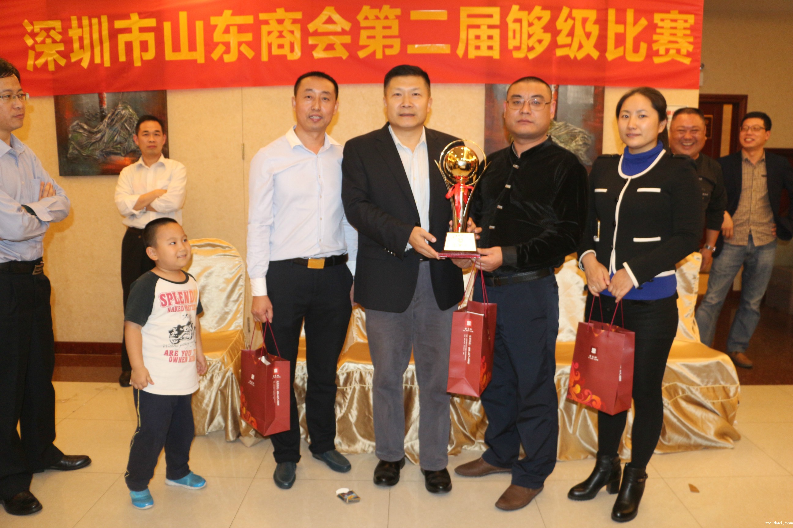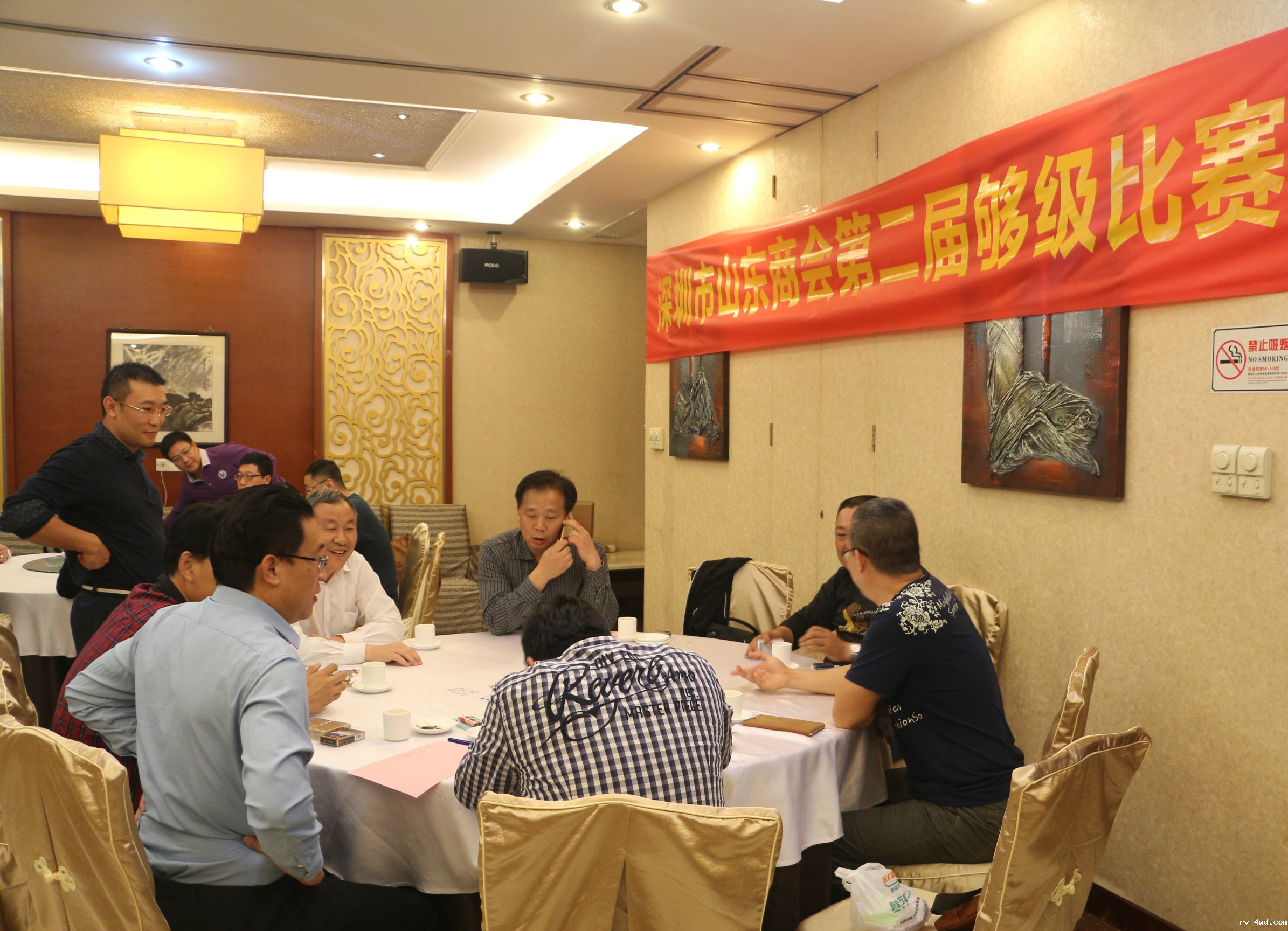 比赛结束后,常务副会长郭林槐,副会长杨利、张捷、贾朕分别为获胜队颁发团体奖杯和常务副会长郭林槐赞助的奖品,大家合影留念。之后在鲁粤轩共进晚宴。席间,大家意犹未尽的交流牌技,相约下次再战。