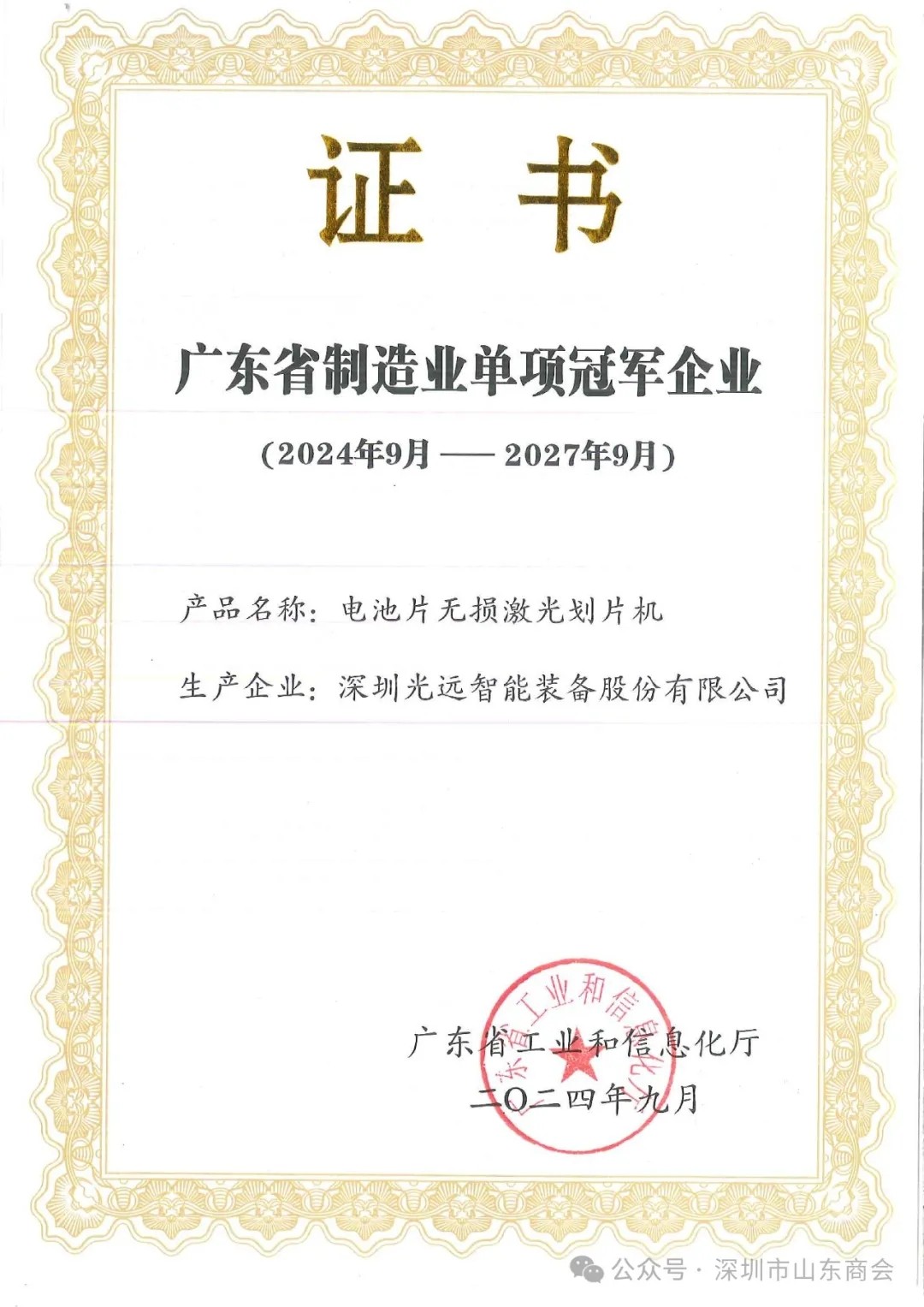 日前,遴选名单发布,我会理事单位深圳光远智能装备股份有限公司荣获“广东省制造业单项冠军企业”。