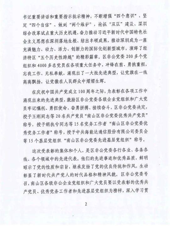 7月7日下午,中共深圳市南山区非公有制经济组织委员会关于表彰优秀共产党员、优秀党务工作者和先进基层党组织大会在雅昌艺术文化中心举行,区非公党委相关负责人、企业家、党务工作者、党员代表参加了此次会议。