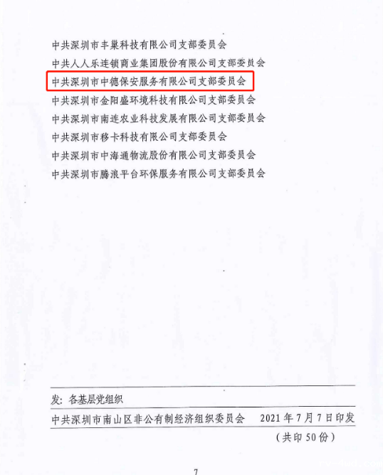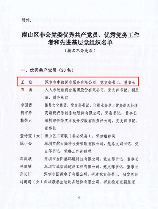 18新利理事单位深圳市中德保安服务有限公司荣获“两优一先”表彰
