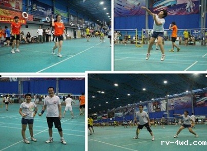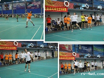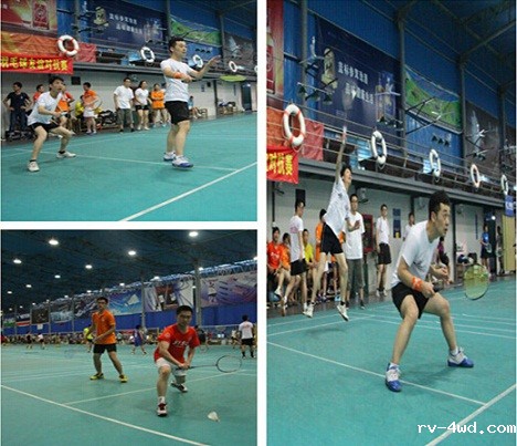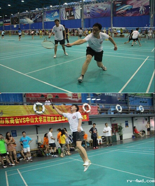 14:30主持人李娜宣布开幕式结束,比赛也正式打响,此次比赛采取团体赛的形式,单局淘汰制,既能增加商会的凝聚力,又能激起参赛选手的斗志和集体荣誉感。整场比赛中参赛选手们精湛娴熟的技法博得了现场观众们的阵阵喝彩,加油声不绝于耳,笑声不断。选手们使劲浑身解数时而分离扣杀时而轻盈吊球每道招式尽是精彩,真正赛出了风格赛出了水平。 由于比赛采取一局胜制所以每一局都十分重要,男双比赛中臧海和王晓凭借各自高超的技艺使比赛进入白热化阶段,比分十分紧咬一路厮杀到25比24,虽然失败了,但是他们虽败犹荣,他们的精神赢得了全场热烈的掌声和欢呼。