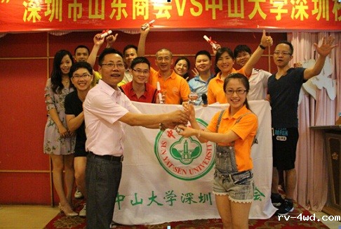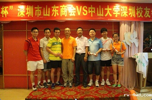 常务理事、鲁光电子董事长朱礼贵代表商会向获得冠军的中山大学校友会羽毛球队颁奖