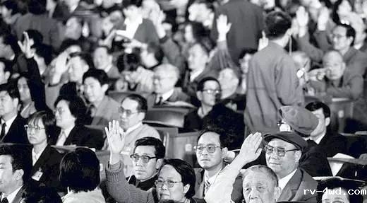 ▲ 1989年4月4日,在七届人大二次会议表决国务院提请审议授权深圳市制定深圳经济特区法规和规章的议案的决定时,一部分代表投反对票。