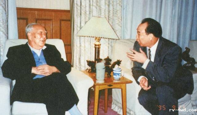 ▲ 万里于1993年退休后,依然心系深圳立法权相关事宜。图为1995年,厉有为向其汇报工作,左一为万里。