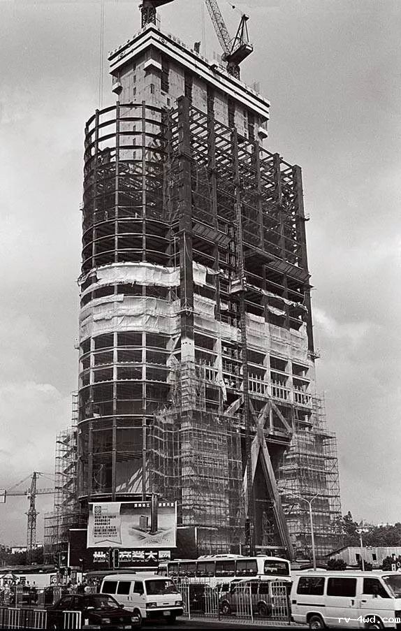 ▲ 1995年深圳地王大厦主楼封顶,楼高383.95米,创造了当时世界超高层建筑最“扁”最“瘦”的记录。