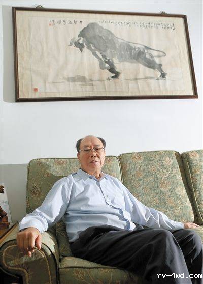 ▲ 2013年10月23日,厉有为在自己家中。他最喜欢牛,于是要求在家中“牛”的绘画作品下拍照。新京报记者 尹亚飞 摄