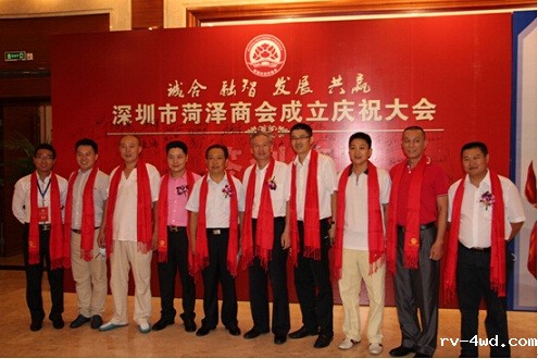 商会荣誉顾问、原深圳市副市长郭荣俊与出席成立大会的部分菏泽商会成员合影