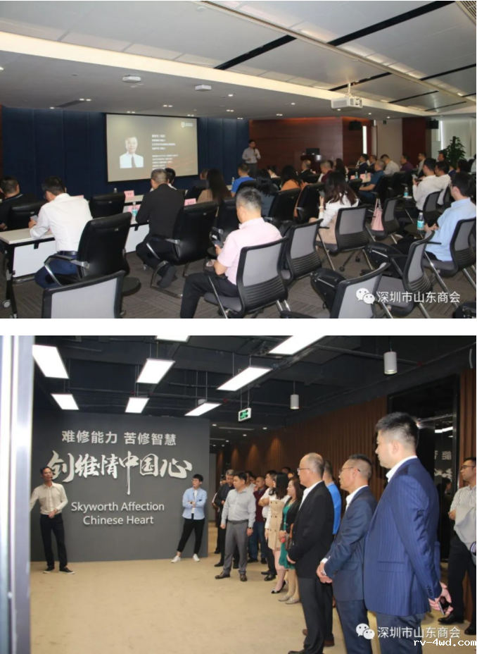 第一站到访了创维集团。大家聆听了创维汽车的产品介绍,并参观了创维电视历史博物馆、创维医疗、创维智能家居等展厅,随后在会议室观看了创维汽车商学院的介绍。