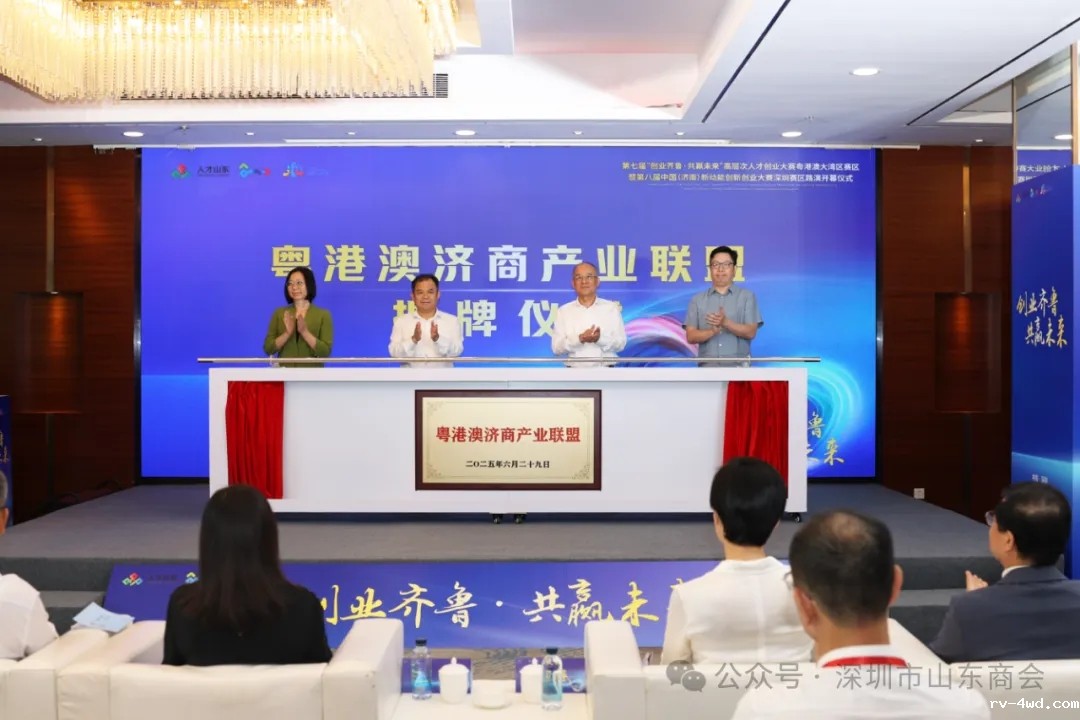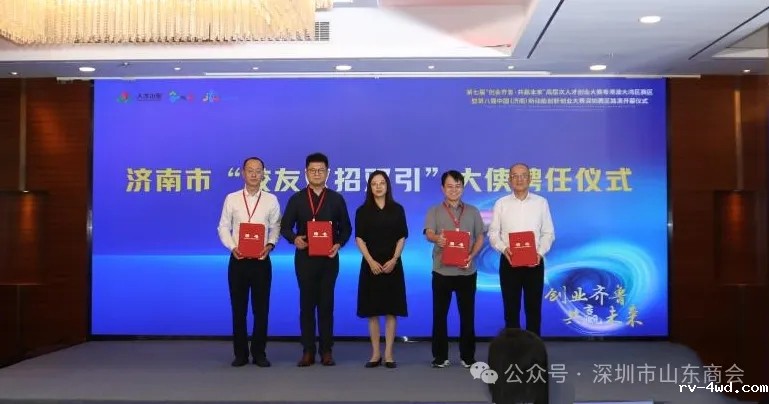 活动中,山东省委组织部人才工作二处负责同志为王立新会长等颁发了济南市“校友双招双引大使”聘书,济南市委组织部副部长、市委人才办常务副主任王玉跃颁发了“海右伯乐”聘书,“粤港澳济商产业联盟”正式揭牌,与会领导共同启动大赛路演仪式。