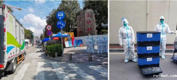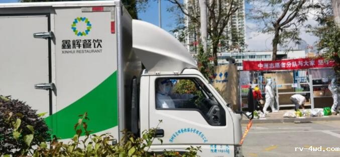 ▲ 送餐车辆抵达分餐现场
