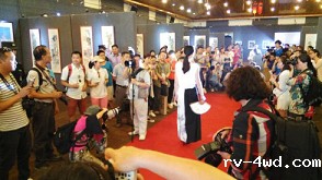 颇具特色的水墨画形式的服装表演,吸引观众和媒体记者的目光