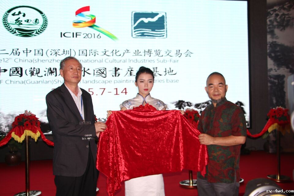 “梦在丹青”画展——深圳齐鲁书画院在深山东籍的书画名家作品展厅,在院长王维星的带领下携作品参加展出。我会创会会长、齐鲁书画院院长王维星受邀上台致辞并为基地揭牌,同时和我会会长王立新等共同为本次开幕式剪彩。中国女画家协会的画家的展览作品亦在深圳观澜的文博会分会场主馆展出。深圳电视台等数十家媒体的记者报道了此次画展盛况。当天下午,举行了中国画的论坛交流活动。