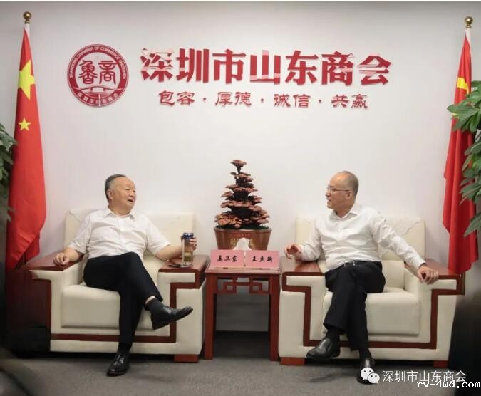 王立新会长对姜卫东董事长一行的到访表示欢迎,并介绍了山东商会的基本情况、发展历程以及在服务会员、党建工作等方面取得的成果。王会长表示,今年3月份到访五征集团参观留下了深刻的印象。五征集团在农业装备和汽车零部件等领域具有很强的实力和品牌影响力,是山东省第一批高端制造领域的“山东好品”,与深圳产业生态有很大的合作空间。目前,商会也在积极宣传筹备“鲁品进粤,粤品入鲁”优质产品进大湾区活动,希望双方能够进一步加强交流合作,发挥各自优势,共同促进五征集团等“山东好品”走进粤港澳大湾区,促进鲁深两地产业融合发展。