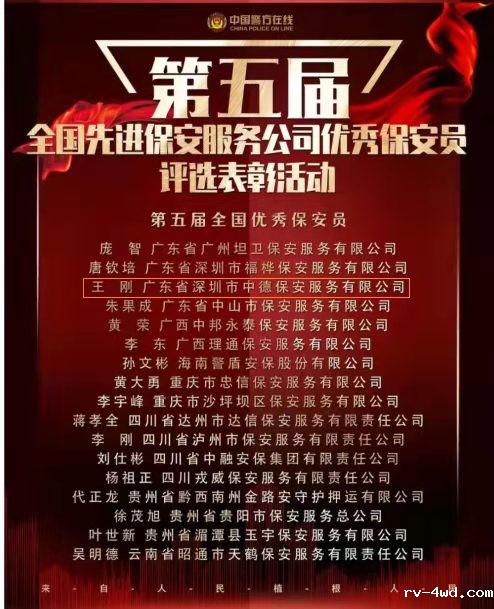近日,公安部、中华全国总工会、共青团中央联合发布表彰决定,对全国50家先进保安服务公司、100名优秀保安员进行表彰。我会副会长单位深圳市中德保安服务有限公司总经理王刚同志被授予“第五届全国优秀保安员”荣誉称号。
