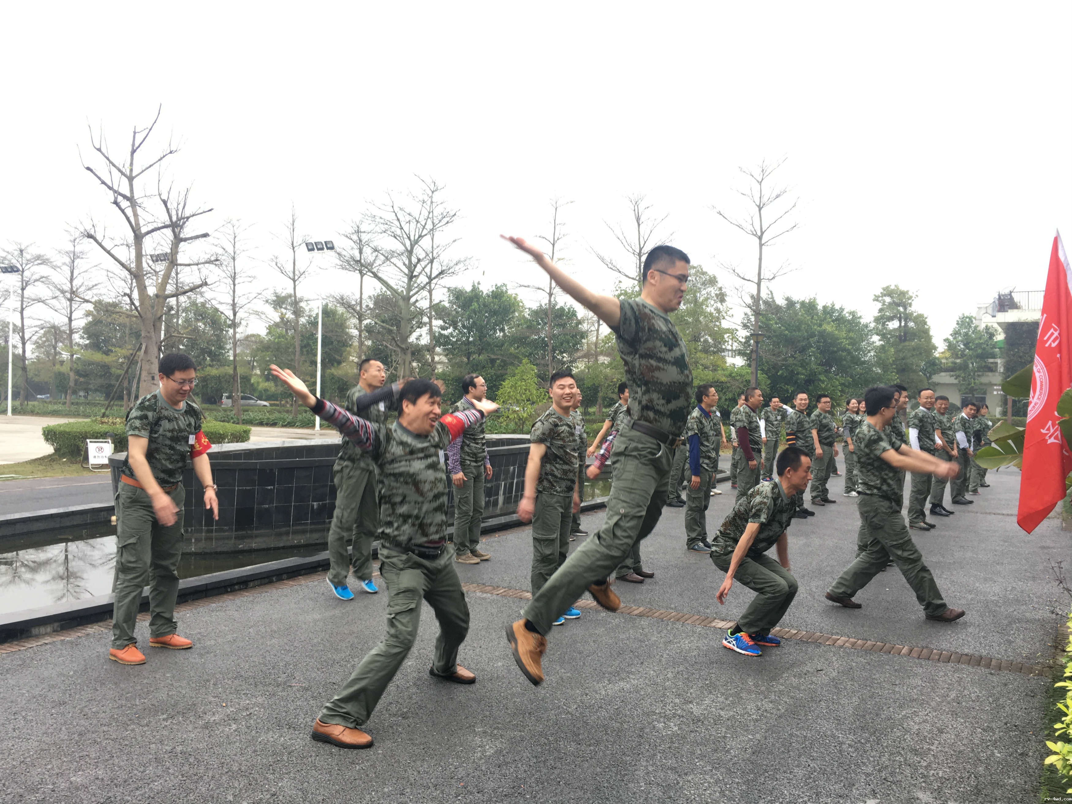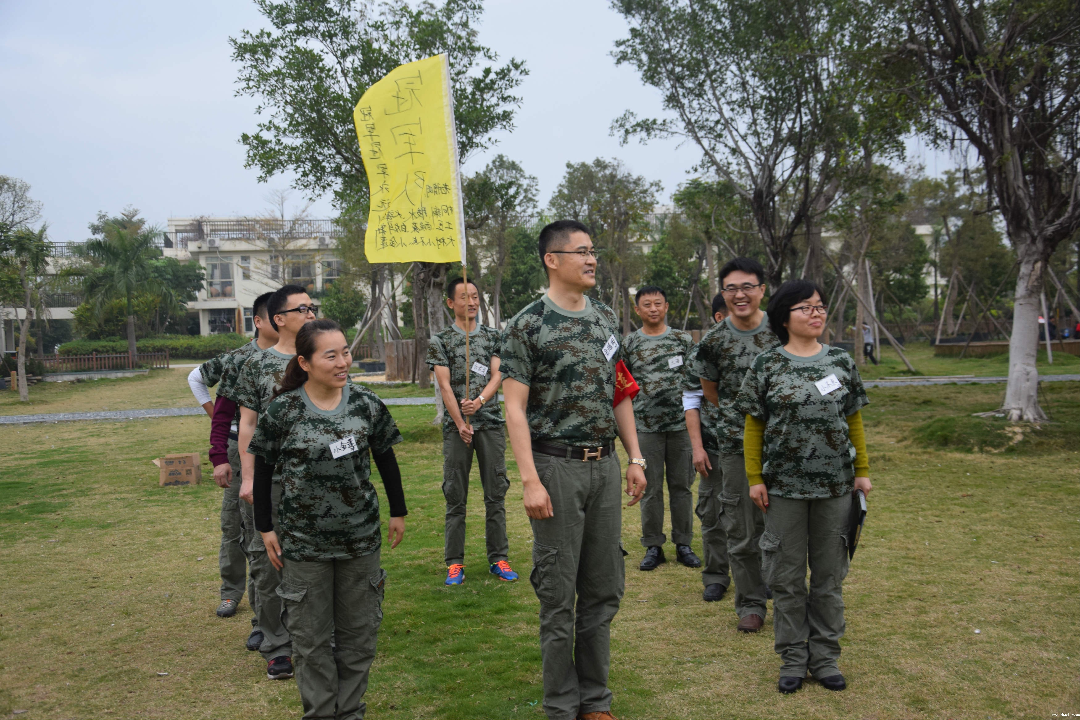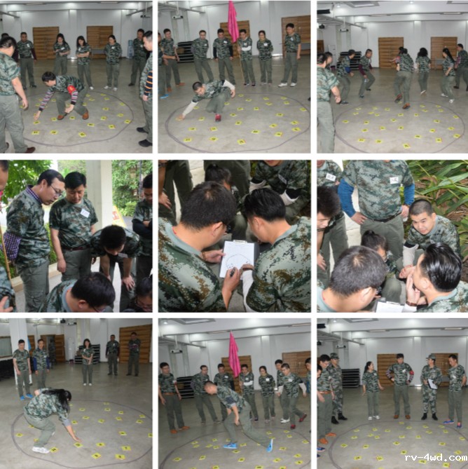 踏着三月的明媚春光,伴随着一路的欢歌笑语,在获得心仪的代号并换上久违的军训服之后,大家如期来到拓展基地。拓展训练是一个塑造团队活力,推动组织不断增值成长的过程。此次活动主要围绕“赞美团队”和“团队熔炼”两大主题展开,随着赛前一系列轻松愉快的小游戏,队员们初步感受到了团队氛围并建立了相互信任的基础。在教练的指导下,全体队员分成超越队、冠军队、天鹰队三个队伍,在队长陈增海、单成勇、陈学成的带领下,各队确定了各自的团队口号和队歌,随后在赞美团队、自助野炊、共同进退、解救人质等活动上进行了比拼。