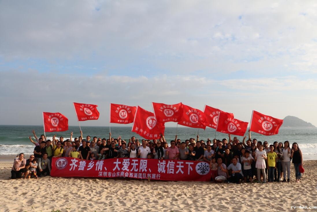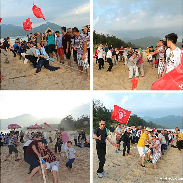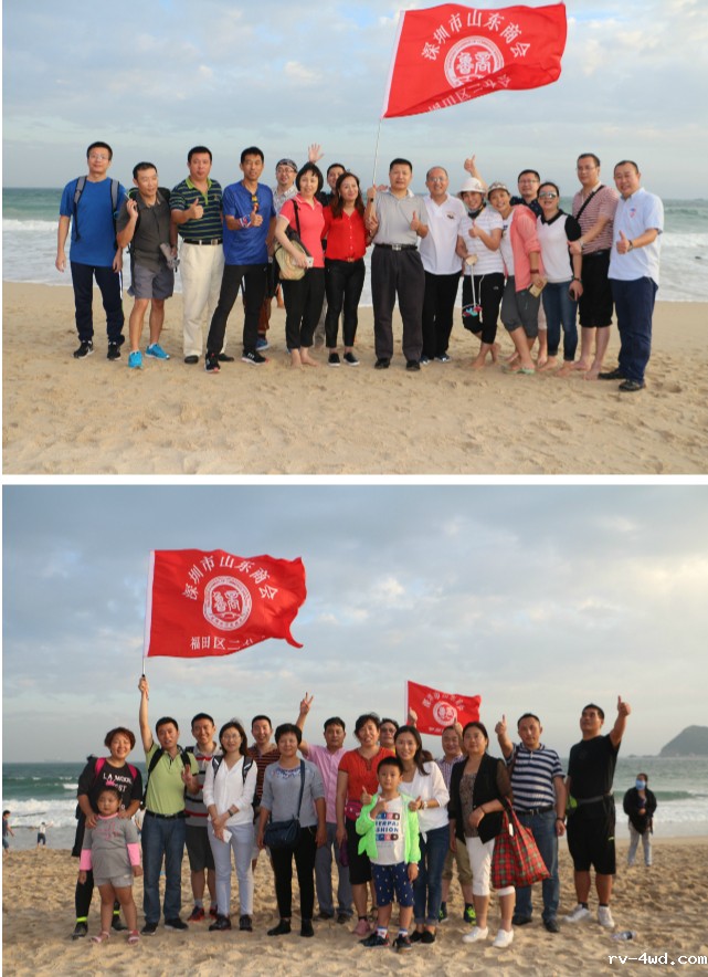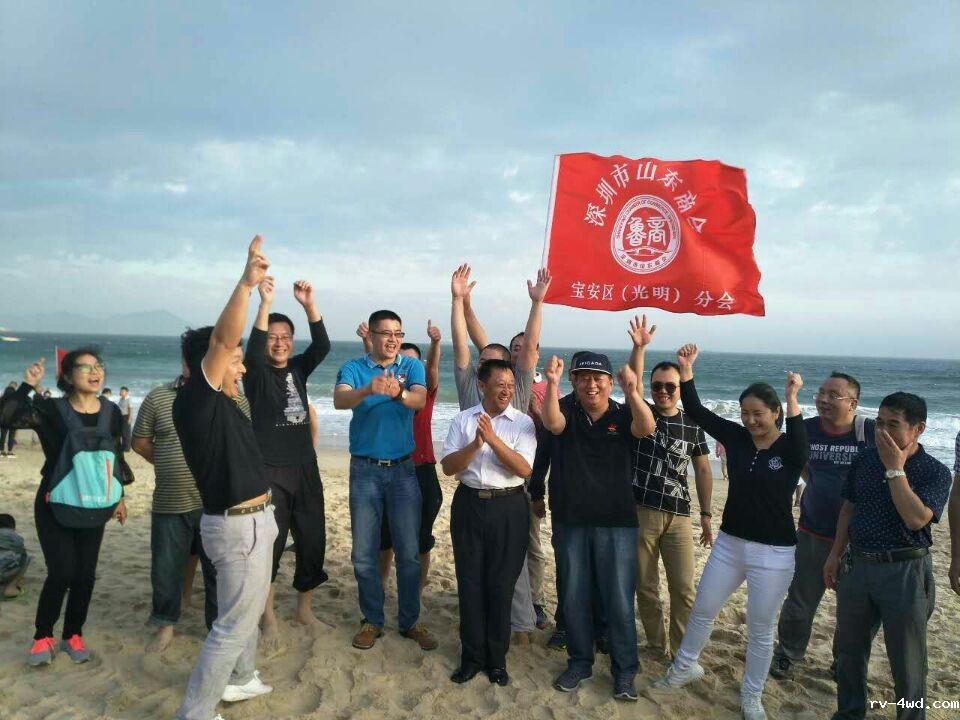 下午,大家乘大巴来到西涌海滩。商会大旗和各区分会会旗在海滩上飘扬,形成了海边一道亮丽的风景。之后各区分会进行了拔河比赛。拔河共4个队,两两对决。比赛开始前,大家摩拳擦掌,跃跃欲试,在各小队队长的精心指导后,经过紧张的角逐,最终由宝安、龙岗、龙华联合纵队获得第一名。