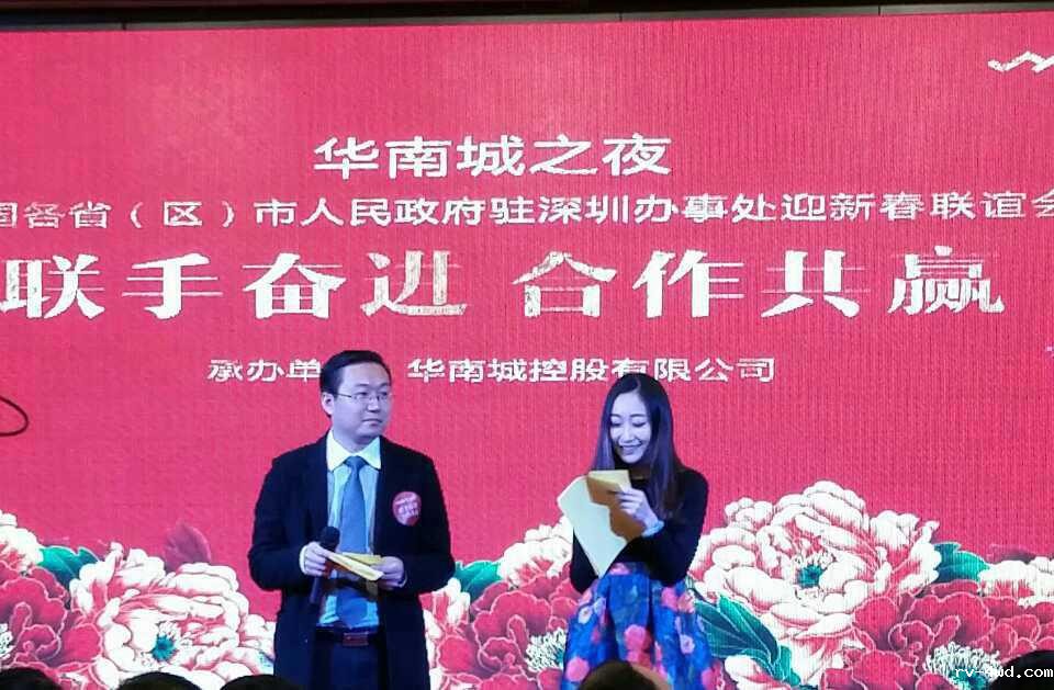2015年1月18日下午,“全国各省市区驻深圳办事处迎春晚会”在平湖华南城富豪酒店举行,期间大家共同参观了华南城,商会荣誉会长、山东省驻深办主任刘恒昌及副秘书长王凌鸿与全国各省市区驻深圳办事处的领导、深圳异地商会会长、秘书长等300人出席。