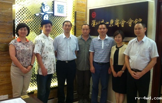 秘书长伍柳江与郑春雨导演及深圳市同洲电子股份有限公司副董事长、深圳市女企业家协会副会长孙莉莉(右2)等在商会会馆合影留念