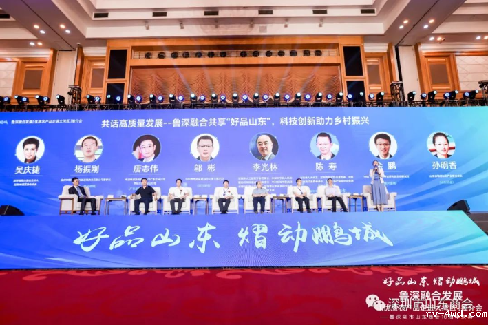 活动现场,举办了主题为“共话高质量发展——鲁深融合共享好品山东,科技创新助力乡村振兴”的圆桌论坛。论坛邀请了有关专家学者、政府领导、企业家等多个领域的精英,就人工智能、新材料、新能源、乡村振兴等话题分别进行了广泛的对话。对话活动由深圳卫视著名主持人、深圳市表演艺术协会会长吴庆捷主持。
