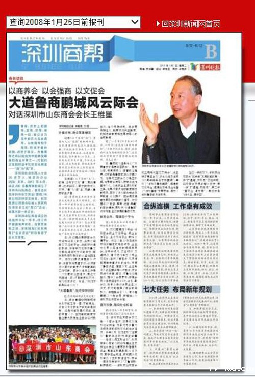 2014年1月7日深圳晚报《深圳商帮》“会长访谈”栏目以整版篇幅(B7版)刊登了记者李昌亮采写的“以商养会 以会强商 以文促会‘大道鲁商鹏城风云际会’--对话18新利王维星会长”专访。其全国各大媒体及各种微信群、QQ群进行了转发。18新利成立时间虽然只有一年半,但工作开展得有声有色,并受到了各界好评。