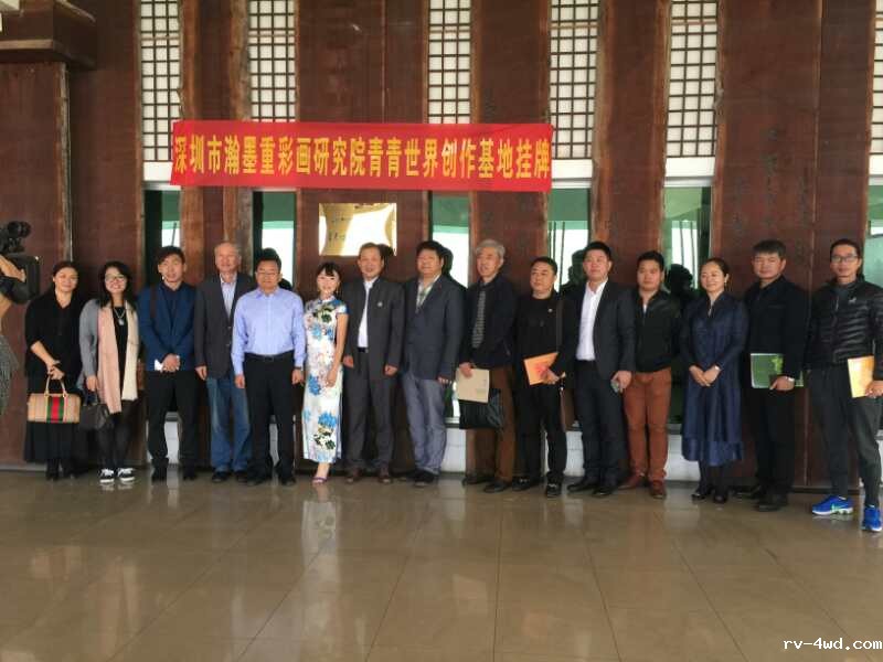 成立仪式后,深圳市瀚墨重彩画研究院为青青世界授牌 " 创作基地 ",并举行了重彩画笔会。