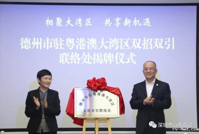 王立新会长、张桂爱副市长为“德州市驻粤港澳大湾区双招双引联络处”揭牌