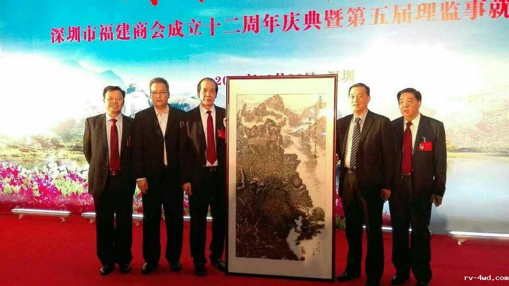 2015年12月15日 “深圳市福建商会成立十二周年暨第五届理监事就职典礼《八闽同心-中华圆梦》 ”在深圳市会展中心五号馆隆重举行,我会秘书长伍柳江,副秘书长兼办公室主任陈振永应邀出席。我会伍柳江秘书长和陈振永副秘书长受王维星会长委托赠送山水画一幅表示祝贺,同时恭祝深圳市福建商会成立十二周年暨第五届理监事就职典礼取得圆满成功!