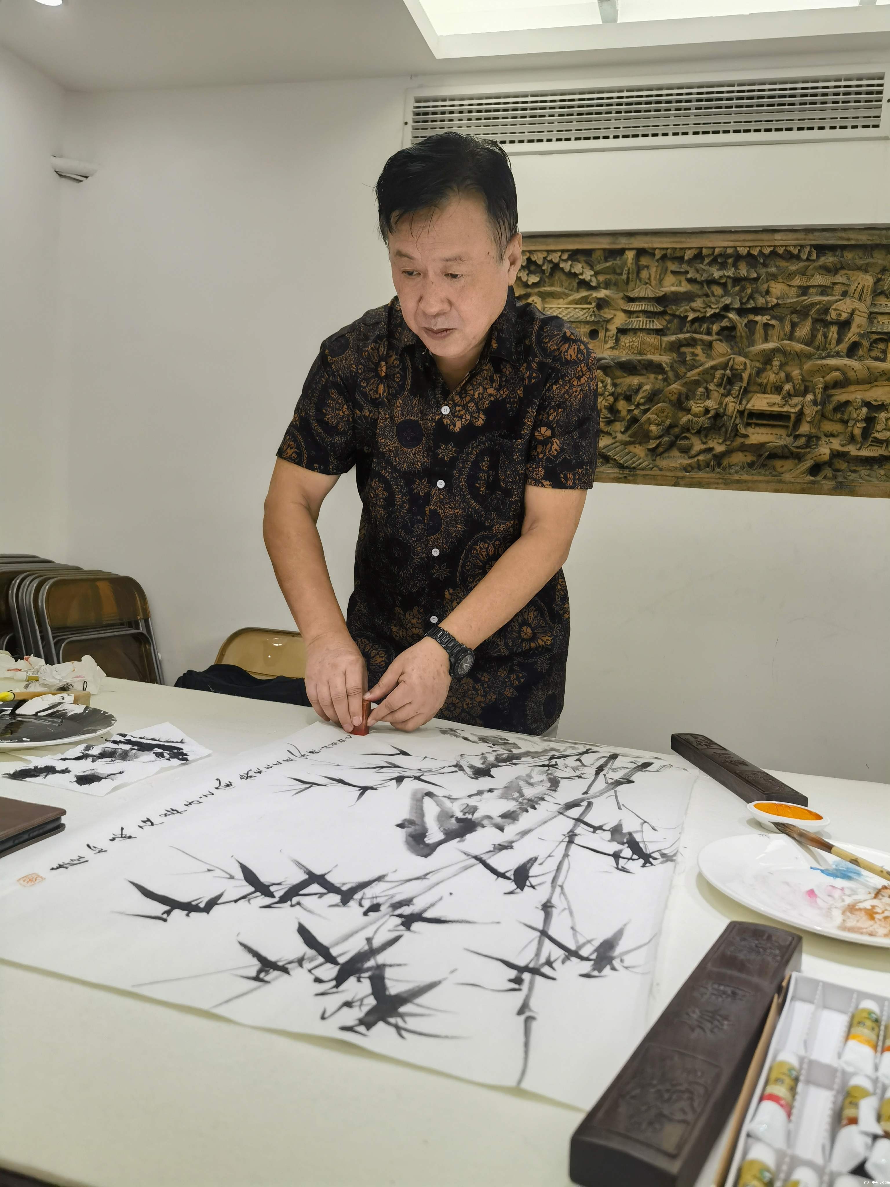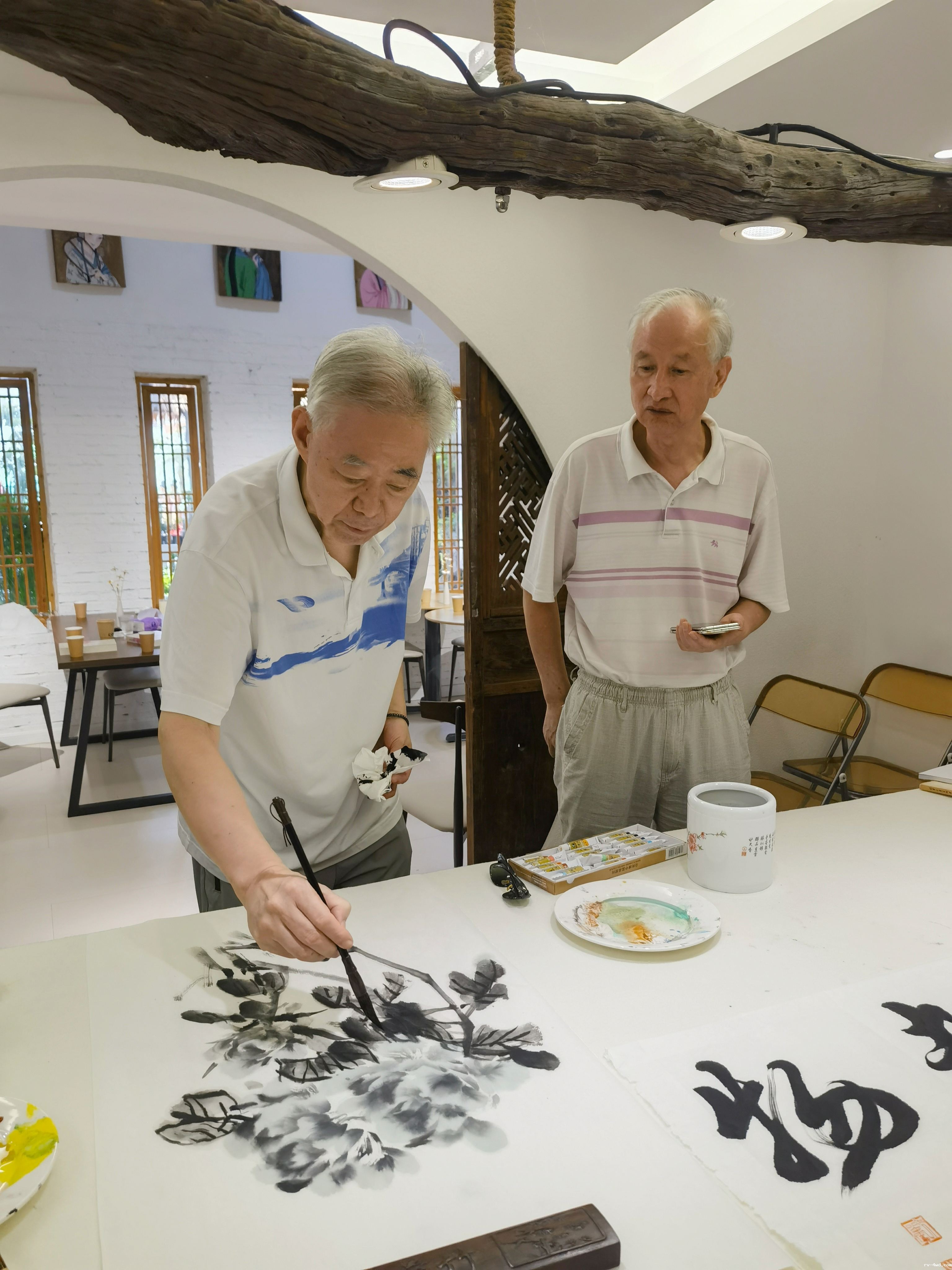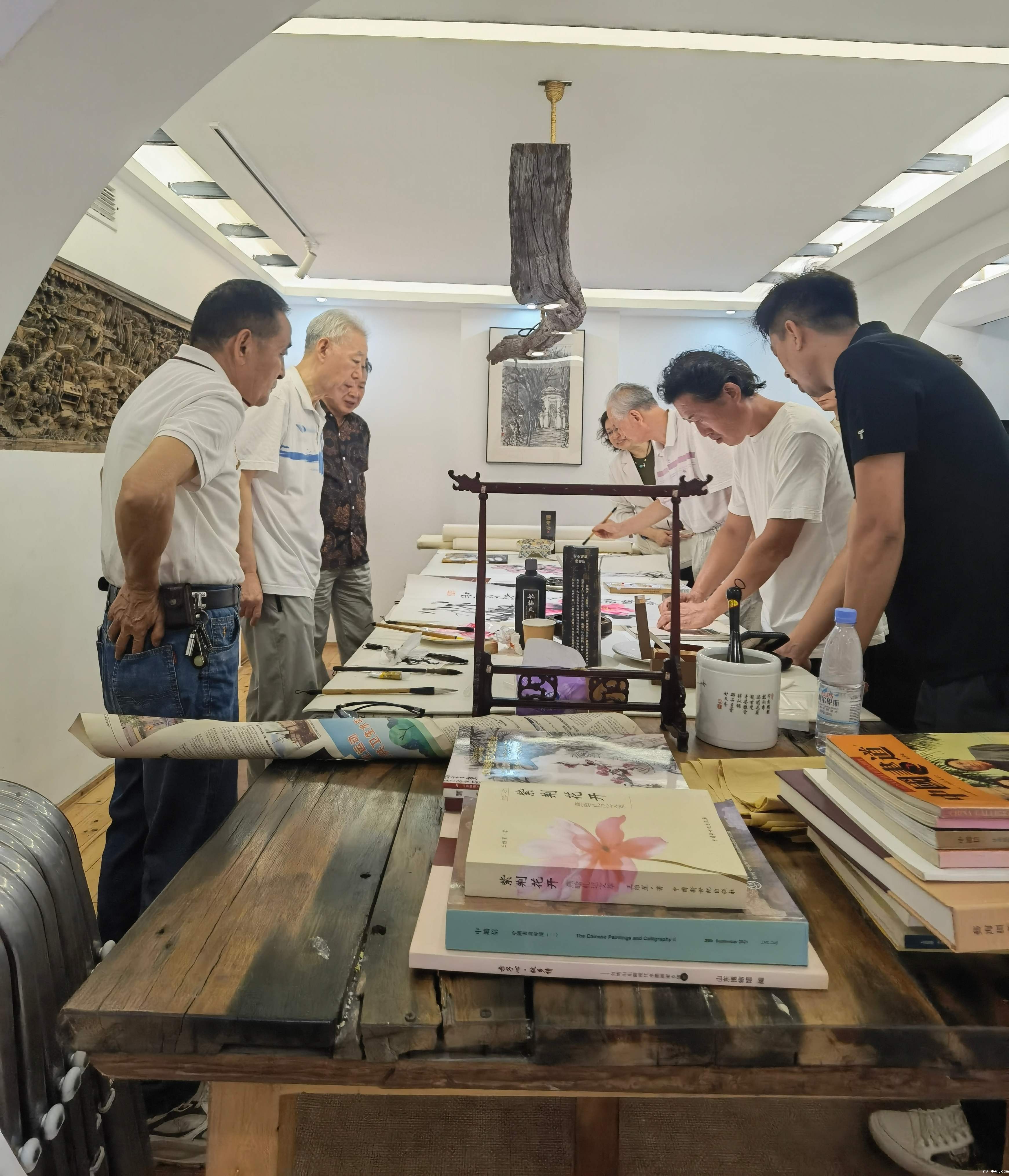 秋意初染鹏城,翰墨香满艺苑。2025年9月11日,深圳市齐鲁书画院多位书画家齐聚荷兰花卉小镇“迁想艺院”,开展笔会交流活动。艺术家们现场挥毫泼墨,畅谈创作心得,书写佳句、绘就丹青,以笔墨礼赞盛世华章。
