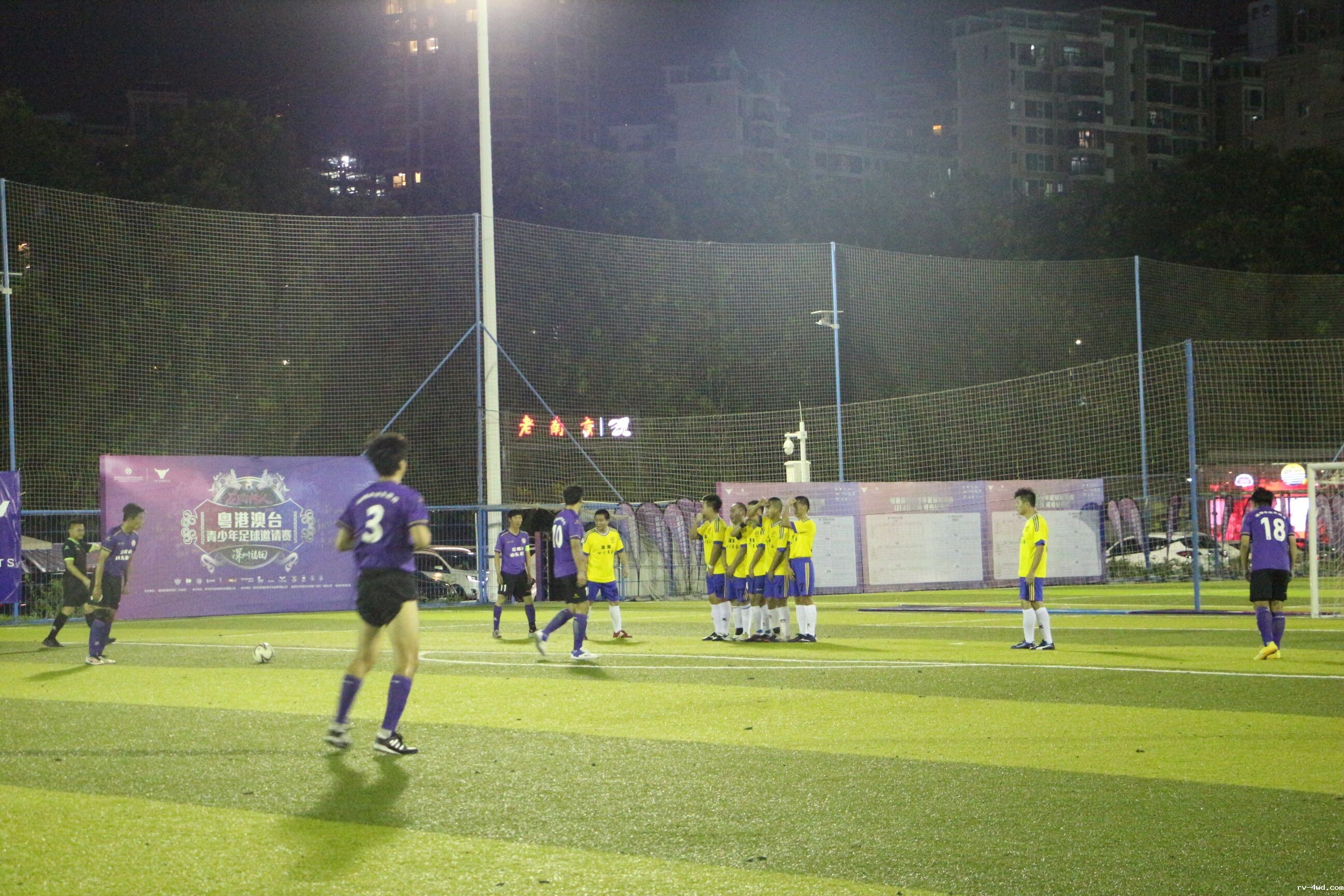 比赛开始后,双方拼抢非常积极。球员们的身体碰撞接触比较多。战局一度进入胶着状态。上半场进行到一半多的时候,我方获得了一个任意球的机会。只见足球插过对方球员侧面,划出一道漂亮的弧线,直接射门成功。我方率先破门,取得主动权。