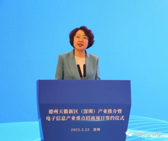 德州市委常委、天衢新区党工委书记祁小青在致辞中指出,电子信息产业是德州市重点打造的主导产业之一,目前全市电子信息制造企业171家,产业基础雄厚且产业链完善,天衢新区把电子信息集成电路作为“一号产业链”,组建了专项引导基金,规划建设了数字经济产业园、智能终端产业园、半导体产业园、手机制造产业园等重点园区。当前,天衢新区战略机遇叠加、区位交通优越、产业基础坚实、人文历史悠久、技能技术型人才资源丰富,消费市场潜力巨大。希望更多企业家来天衢新区投资兴业,携手实现互利共赢。我们将继续坚持“重商、亲商、安商、富商”的理念,竭诚为企业壮大保驾护航、贴心服务,努力让每一位投资者都能在新区舒心创业、安心发展。
