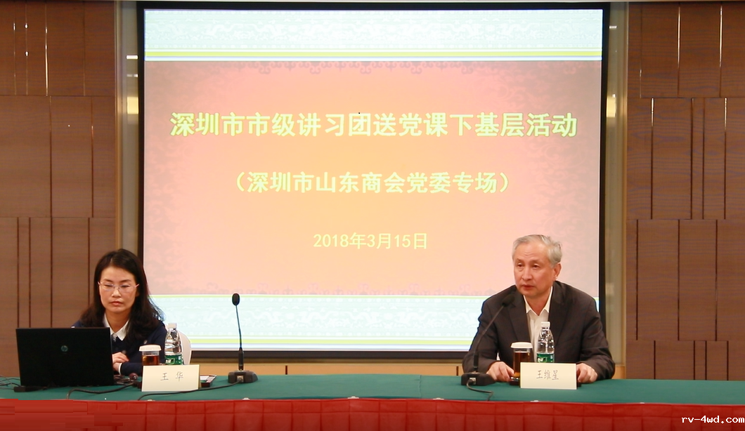 为进一步深入学习贯彻落实党的十九大精神和习近平总书记在参加十三届全国人大一次会议广东团重要讲话精神,2018年3月15日下午,深圳市市级讲习团送党课下基层活动(山东商会专场)在山东大厦东华假日酒店三楼春华厅举行。根据市社会组织党委《关于做好讲习团送党课下基层活动有关事项的通知》要求,18新利党委邀请了深圳信息职业技术学院思政部副教授、法学博士王华同志为大家授课。党委书记王维星同志主持。